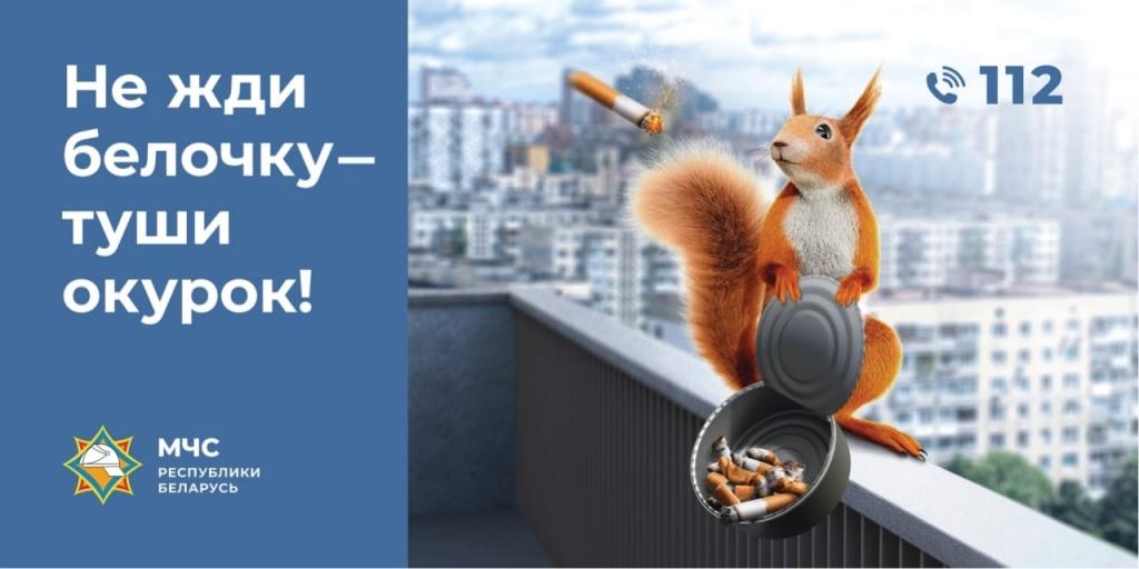 Для того чтобы привлечь внимание к проблеме пожаров из-за неосторожного обращения с огнем при курении и напомнить о безопасности, Республиканский центр пропаганды МЧС с 9 ноября запустил новую информационно-пропагандистскую кампанию – «Не жди белочку – туши окурок!». Ее целевая аудитория – люди, пренебрегающие правилами безопасности и считающие, что непотушенная сигарета – мелочь, которая не способна привести к трагедии.