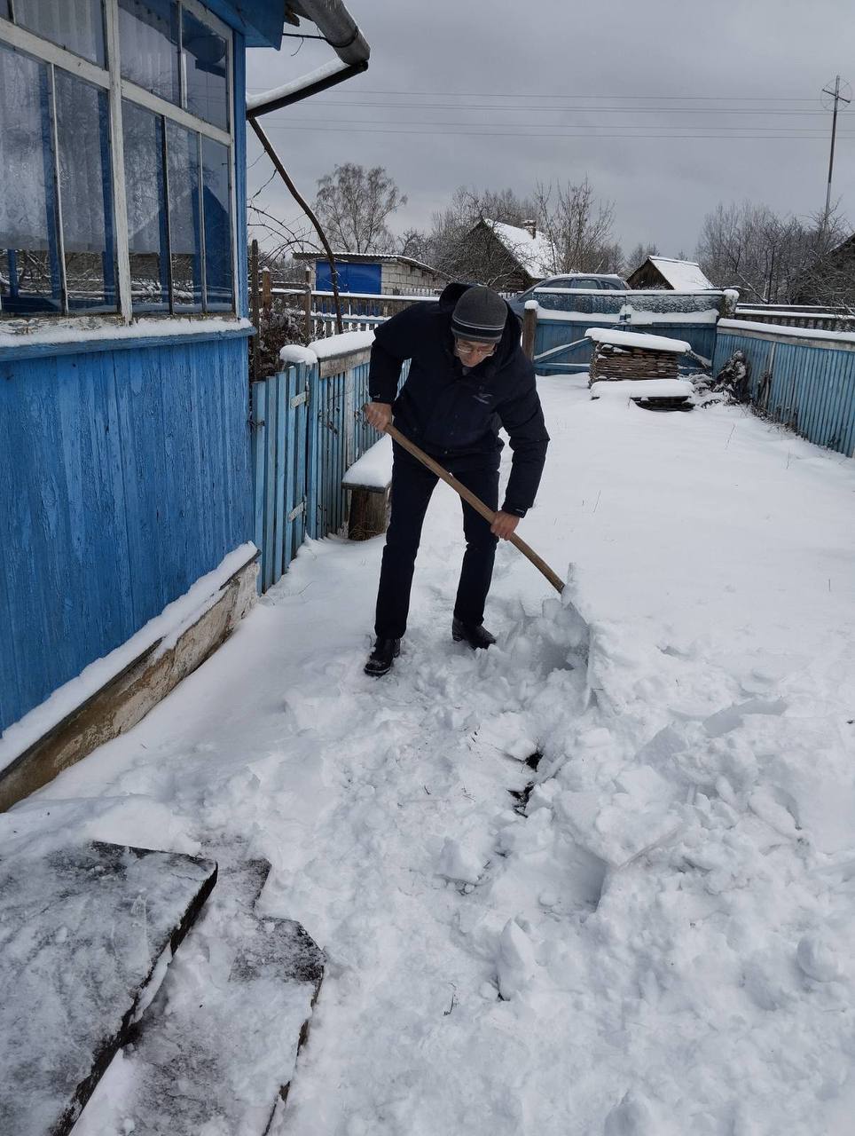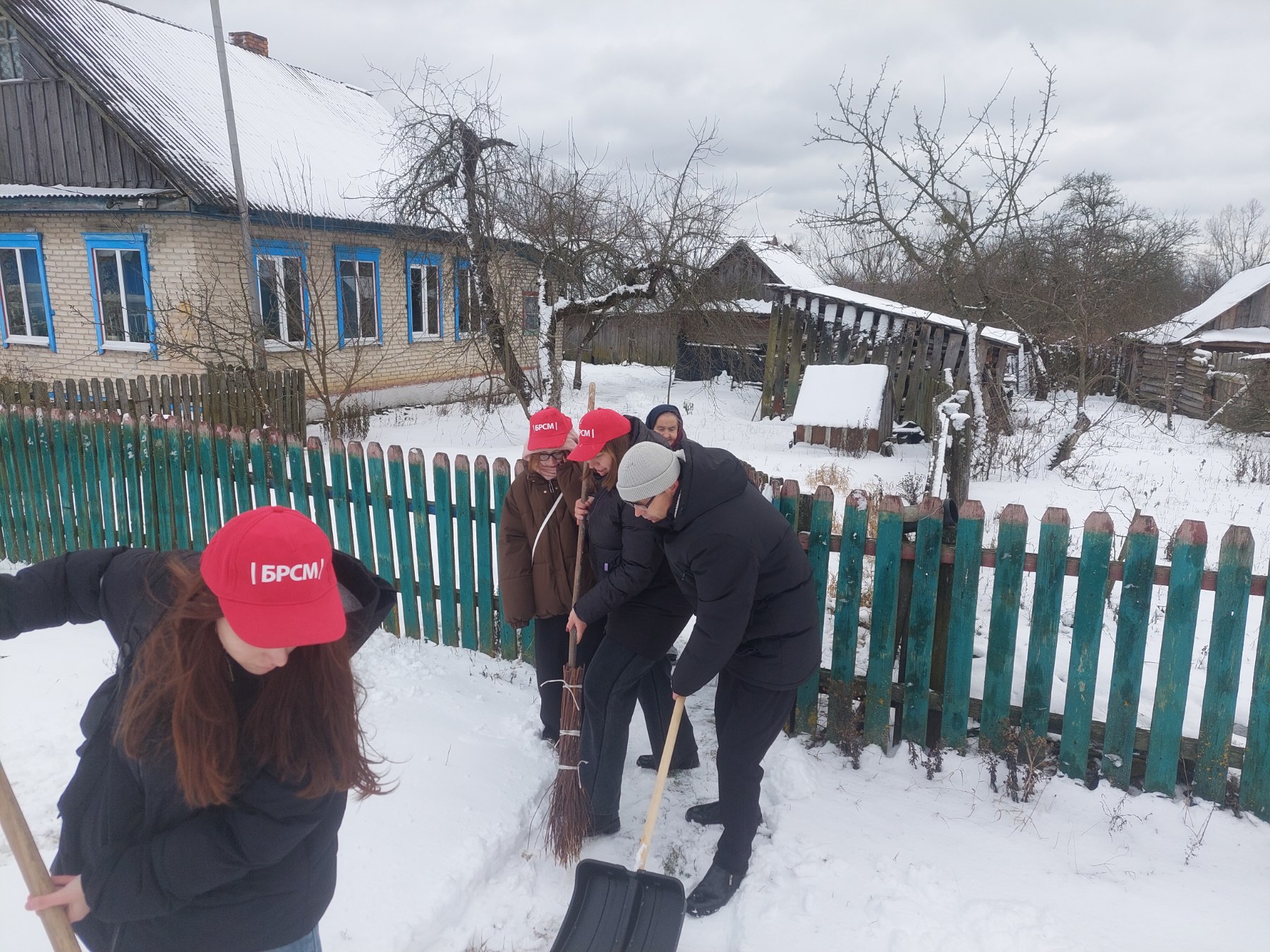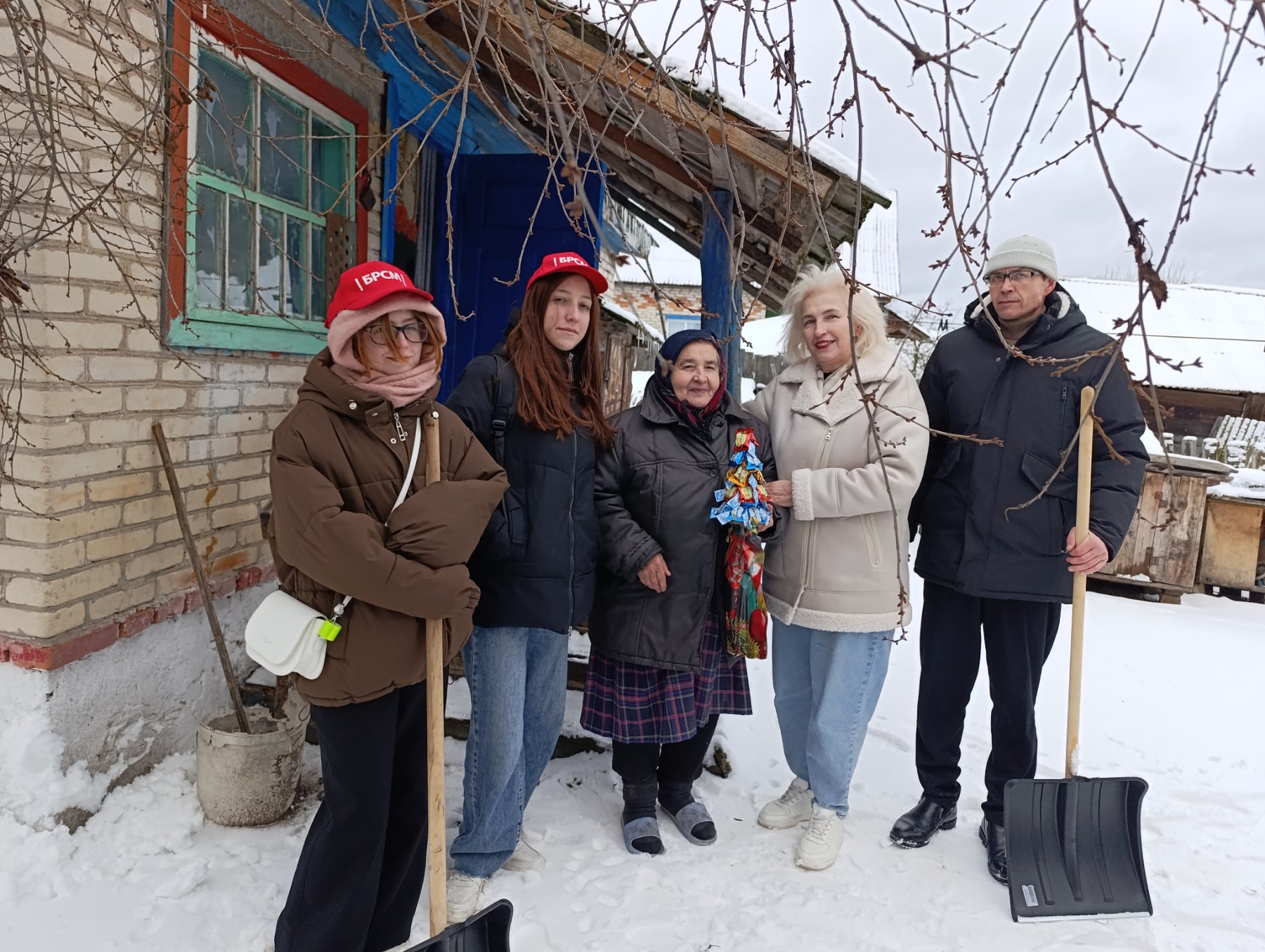 Работники школы не только поздравили ветеранов педагогического труда с праздниками, но и помогли очистить дворовые территории от снега.
