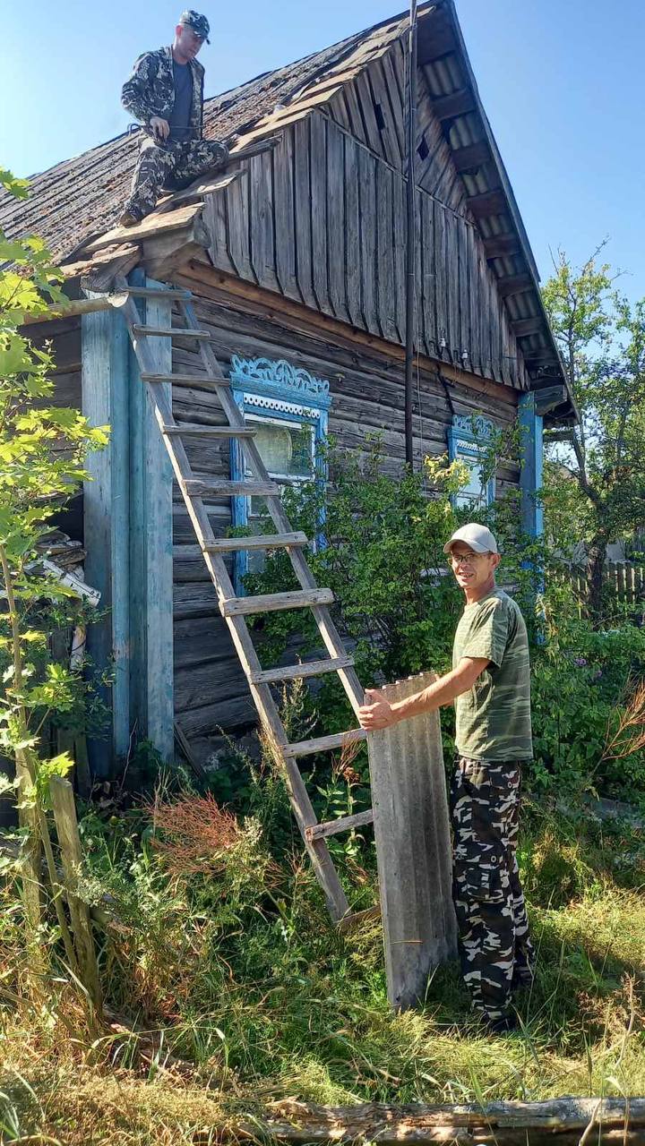 Тут же на помощь пришел профактив Милошевичской средней - они помогли отремонтировать кровлю дома и навести порядок на приусадебном участке.